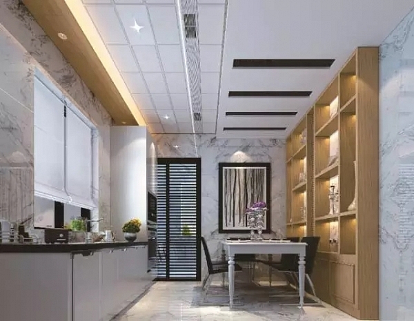 陶紋色的板材使整個頂部空間具有原生態(tài)的韻味,洋溢著人文氣息的陶土紋理板材,做工精密細致,傳達著一種簡約、自然而又時尚的生活態(tài)度。